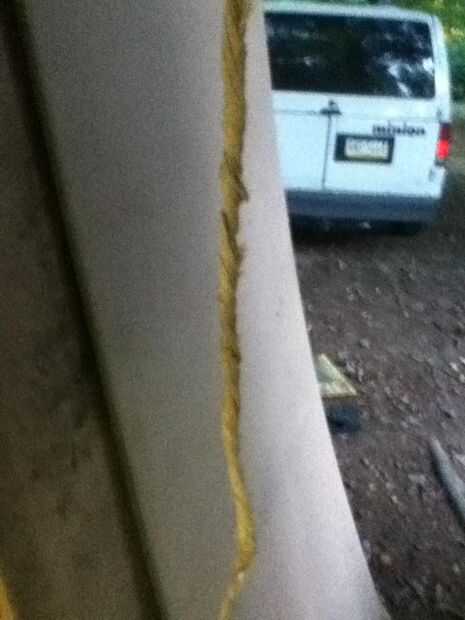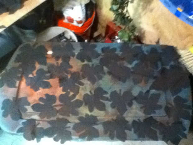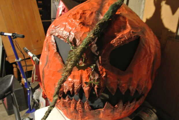 El cuerpo era una camisa hecha de tela marrón delgada, formada libremente con mangas extra largas. Los pantalones eran un viejo par de pantalones de chándal negros. Cortar hojas de calabaza de tela de algodón verde y aerosol-pegado a la camiseta y el pantalón. Las vides fueron hechas de tiras de arpillera "Weed-block", que tiene un tejido flojo de paisajismo. Había impregnado de la arpillera pegamento spray, luego torció la forma de Oni de arpillera, que sujeta a ambos extremos y que se seca, luego pintada las vides con pintura marrón y verde.