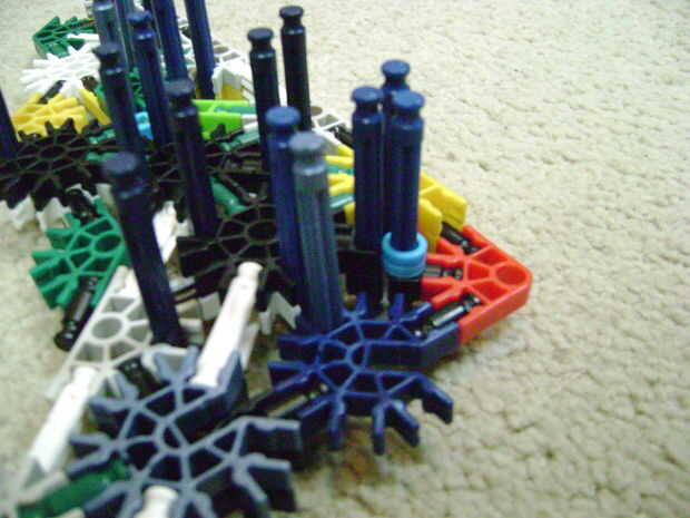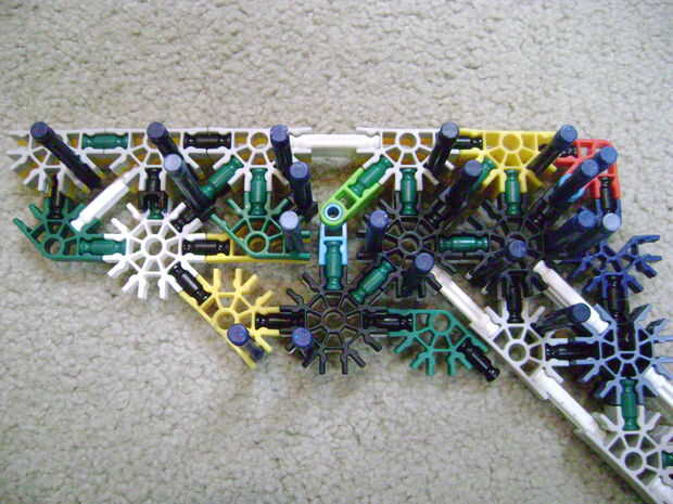 Build,  The last two layers are mirrors of the first two.  Añadir conectores gris donde señaló.  Esta es la parte más difícil de la construcción.