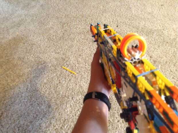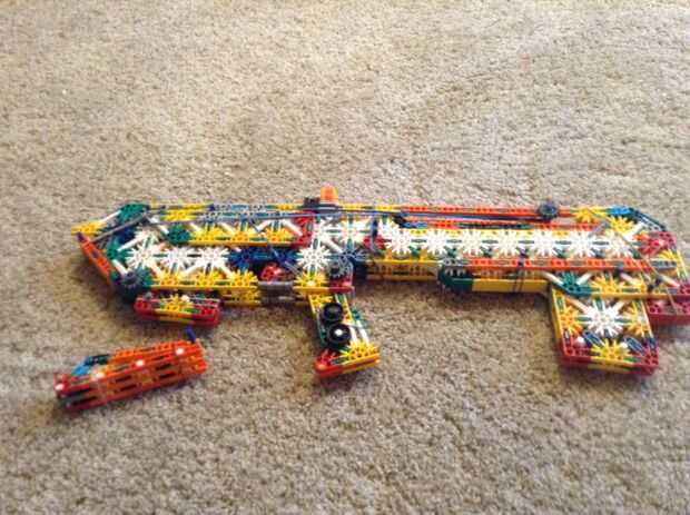 En con el arma (está usted todavía aquí) el acero puede parecer un bullpup pero definitivamente no es. El mag en el caldo es un repuesto mag y no alimenta el arma. La pistola tiene una guía de perno de semi y 20 redondos mags extraíble barra azul por lo que tiene poder y se encuentra fácilmente en el campo de batalla de KVG. La pistola es de 26 pulgadas de largo sin el cañón falso y 31 pulgadas largo con él. La pistola también tiene muy buen alcance a 40 pies y tiene un gatillo ligero de buena precisión.