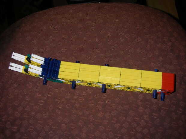 esto es, de lejos mi mejor arma diseñado que he hecho. es muy precisa y con una buena banda de goma tiene un buen rango (40-50 pies). la acción es duradera y el mango diseñado para parecerse a los springfields. está cargada y dispara barras blancas.