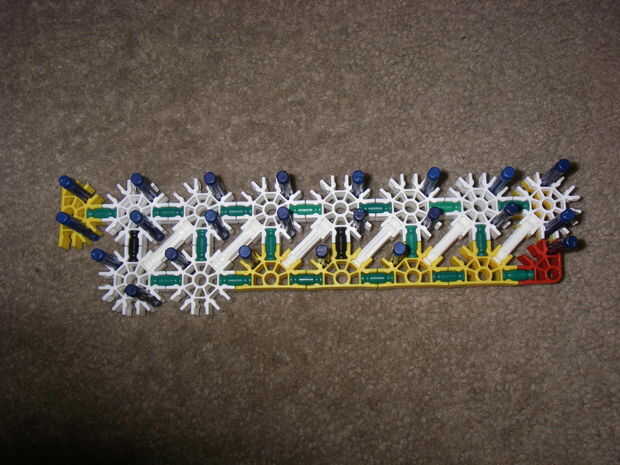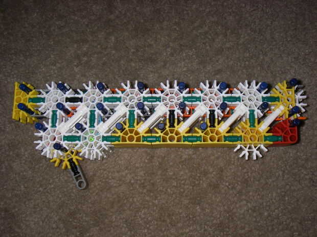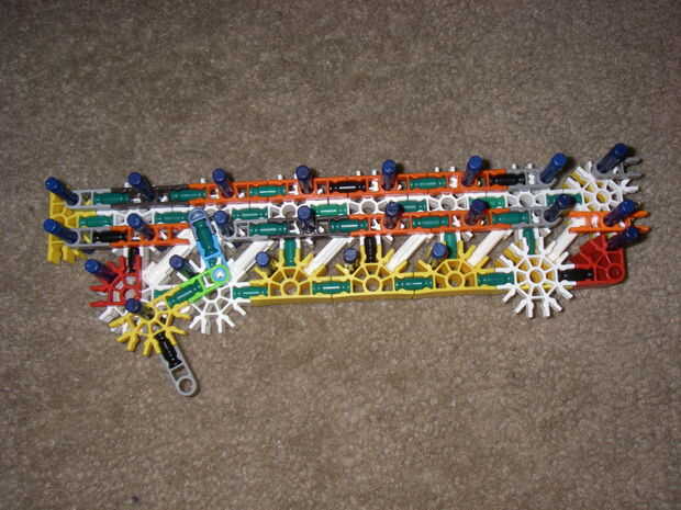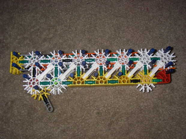 esto es, de lejos mi mejor arma diseñado que he hecho. es muy precisa y con una buena banda de goma tiene un buen rango (40-50 pies). la acción es duradera y el mango diseñado para parecerse a los springfields. está cargada y dispara barras blancas.