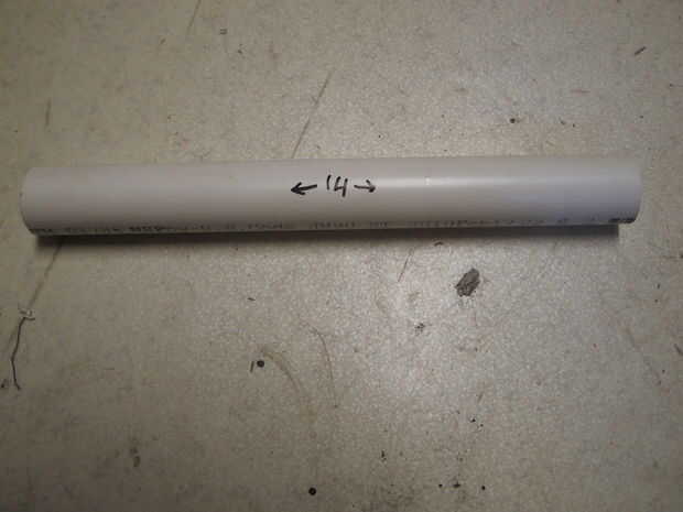 tomar el tubo de PVC de 1 1/4 y corte una sección de 14 pulgadas. Lisa de cualquier áspero los bordes y rebabas.