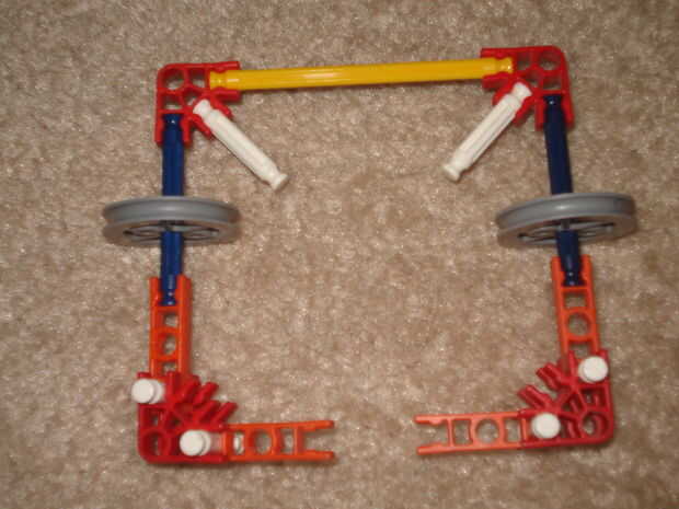Conecte los dos objetos pequeños a la suspensión de la rueda como se muestra en la segunda foto