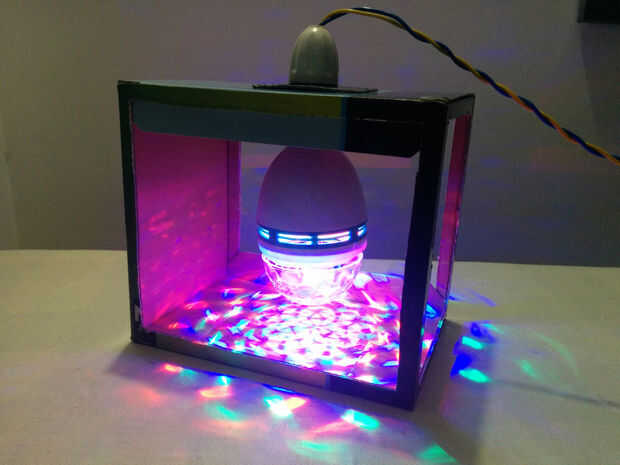 Elegí una luz giratoria porque encajan muy bien con el tema. La luz móvil parecía dio vida en el tema, especialmente el futbolista haciendo dinámica en lugar de una imagen. Reconozco que este proyecto empezó a buscar más como una instalación de una lámpara dada la poca luz que se emite. Reemplazo LED con una bombilla normal y se convierte en una lámpara.