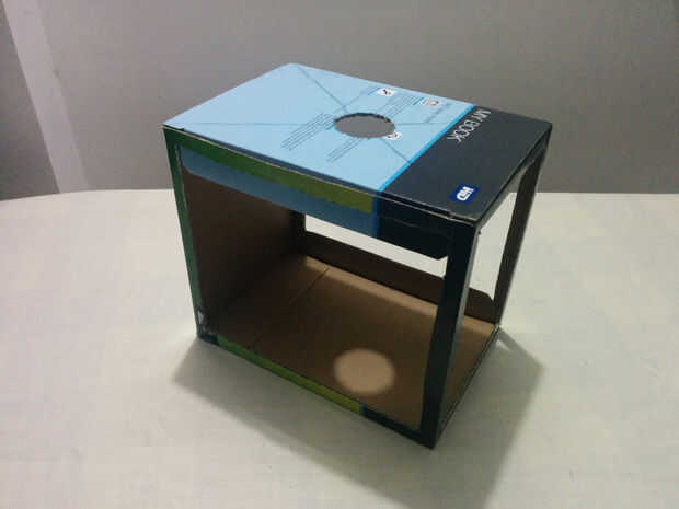 • Elegir que lado de la caja la bombilla de luz que proviene del. Parte superior o inferior son las mejores apuestas. Permite para mantener las cosas simples. Usé la parte superior.