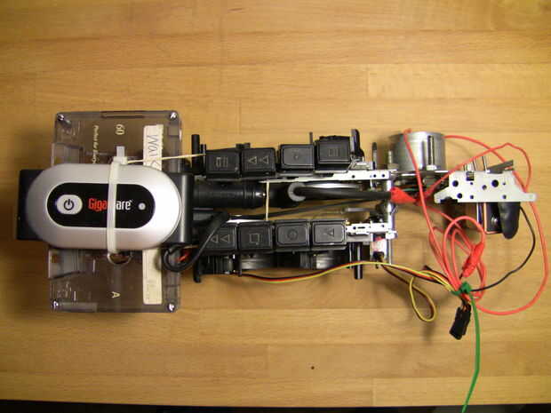 La idea era hacer un robot casi en su totalidad de piezas de reproductor de cintas, y una cabeza de cinta que se arrastra continuamente sobre un campo plano de montaje cubierto en cinta de audio (TapeScape). Así que no estás jugando en una cinta, juegas en una cinta. La salida de audio resultante es una experiencia de sonido glitchy enorme oportunidad para la expresión creativa.