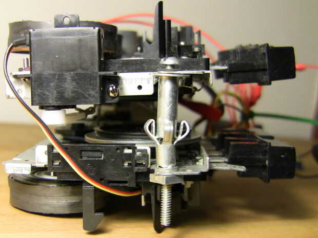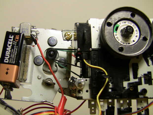 Así que cortamos unas pequeñas lengüetas que vuelva a colocar el motor por lo que sería orientado correctamente con respecto a las poleas de impulsión en los reproductores de cinta.