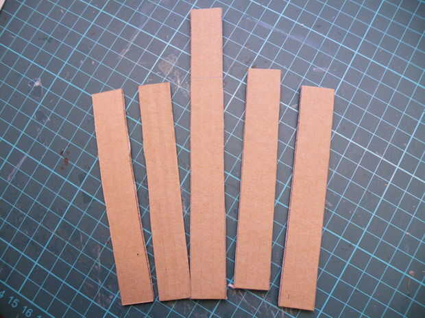 Cuatro eran 12x2cm, y el quinto fue un poco más largo para formar el cuello.