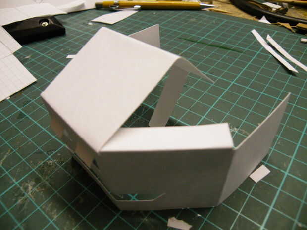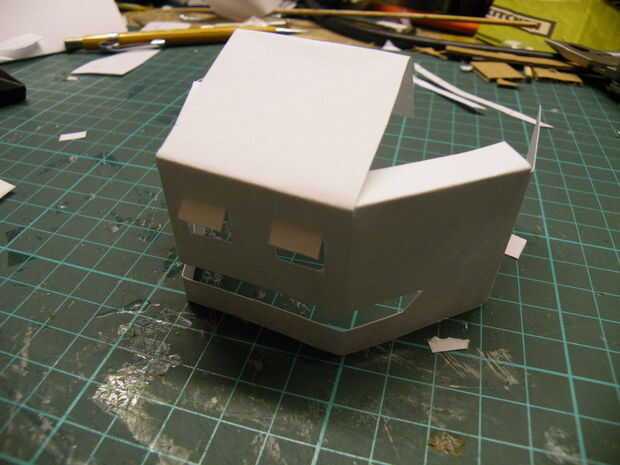 A continuación, doblar la parte superior de la cabeza, la pieza larga y estrecha del lazo por dentro de la cabeza y rosca en los agujeros de la caja de letra para mantener unida a la cabeza.