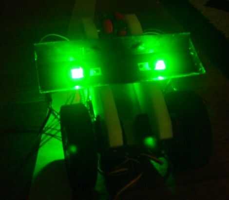 Al lado de los LEDs añadí fotorresistores para ser utilizado como un sensor de color. Ver la segunda imagen para un primer plano.