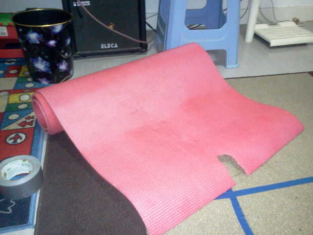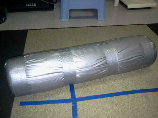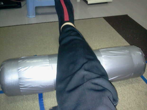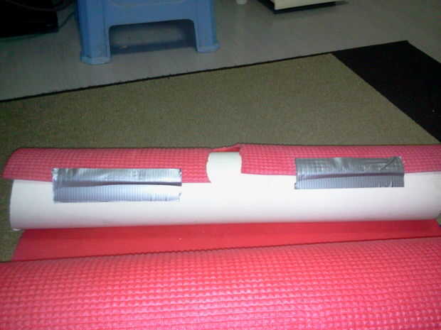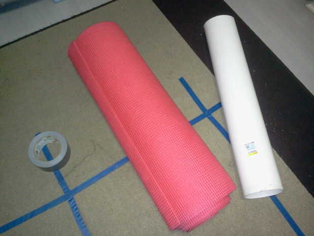 rodillos de espuma se utilizan mucho estos días en Taichi, Yoga y otros tipos de ejercicios realmente soltar las articulaciones y los músculos de una manera muy efectiva. Sin embargo, simples como son, los trozos de espuma redonda puede ejecutar más de $50-$100, o más aún en mi fin del mundo. ASÍ que decidí hacer mi propio, utilizando un trozo de tubo de PVC de la ferretería local, una vieja rasgada estera de la yoga (así no se usa) que tenía por ahí y un rollo de todo el mundo favorito, cinta del conducto.