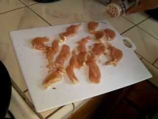 Lo que hicimos fue conseguir el pollo y agregan nuestras especias a los trozos de pollo. Una vez fueron condimentadas para arriba, comenzamos a asar el pollo en la cacerola. Cuando se hace el pollo asado. Colocamos nuestro tocino para cocinar encima de los jugos de pollo y especias que se sobra en la sartén. Este agregado condimentación adicional.