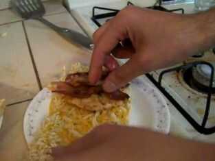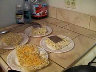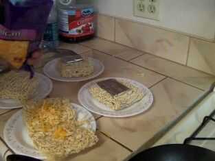 Tan bien tiene los fideos ramen se abrió y extendió encima de la placa! hay que empezar comiendo a este bebé todo su tipo favorito de alimentos! Añadimos el bacon y el pollo, como he dicho antes de que se puede añadir cualquier cosa que tenga en la mano... NADA!