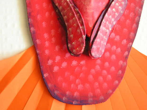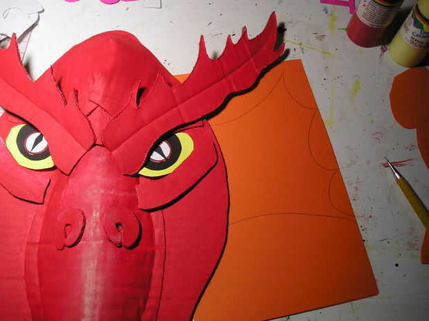 Para este Dragón, elegí una pintura roja brillante. Aplicar de modo que la cobertura es total y dejar para secar. A continuación, pintar las escamas de dragón por diluir la base con un color amarillo pálido. Use un cepillo "desaliñado" 1/4 de pulgada y aplique simplemente en el patrón mostrado. Practicar un poco, pero el objetivo es poner suficiente color en el dragón para simular escamas. Pat no en una línea recta, más bien hacer patrones semi circulares para contornear las áreas que está trabajando.