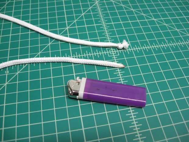 Una opción libre de fuego sería simplemente rodar un poco pequeño de cinta adhesiva firmemente alrededor del extremo no anudado. Ajuste según sea necesario para cualquier pieza con cinta se ocultará dentro del agujero de la bola de madera.