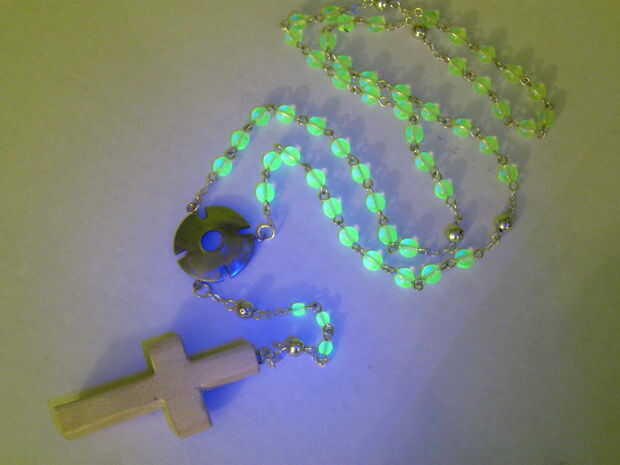 instrucciones para un herencia de calidad Rosario con pernos del ojo y la cadena. Este ejemplo utiliza piezas de plata y piezas, con cuentas de vidrio, con un total de $60 (envío incluido). Hace un regalo único, sincero y duradero. Una versión más ut