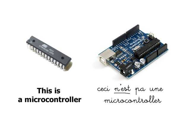 Por supuesto, el Arduino no es un microcontrolador, sino más bien un entorno de desarrollo para microcontroladores--incluyendo un tablero de programador, un programa de software para el ordenador y un lenguaje de programación, además de la viruta del microcontrolador sí mismo. Una solución de programación/depuración el Arduino es extremadamente fácil y agradable utilizar, y el nivel de apoyo que obtienes con ella es bien vale la pena el dinero. Pero realmente, el término "microcontrolador" se refiere específicamente al chip ATMEGA que está en la placa Arduino de depuración. Todas las cosas en el tablero (el lujo de alimentación, los LEDs, el botón de reset, los circuitos de programación, el convertidor de USB a Serial) es totalmente opcional.