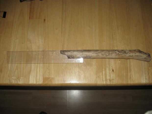 El diseño de la hoja no está terminado, tal vez termine este o voy a mirar alrededor para un pedazo más largo (2 x) de plexiglas para que coincida con la longitud de la manija.