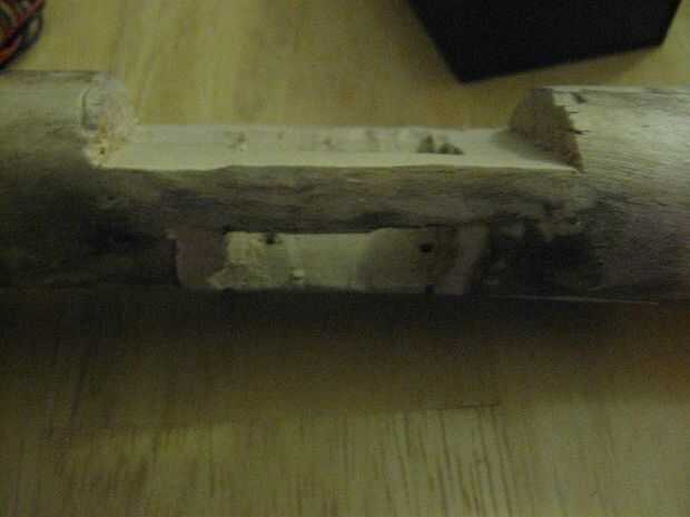 Después de que usted está satisfecho con los componentes colocados es tiempo otra vez para recoger su dremel y destripar su manija para fácil acceso y cableado. Las colocaciones son aplanadas con una navaja porque no tenía un vil cerca.