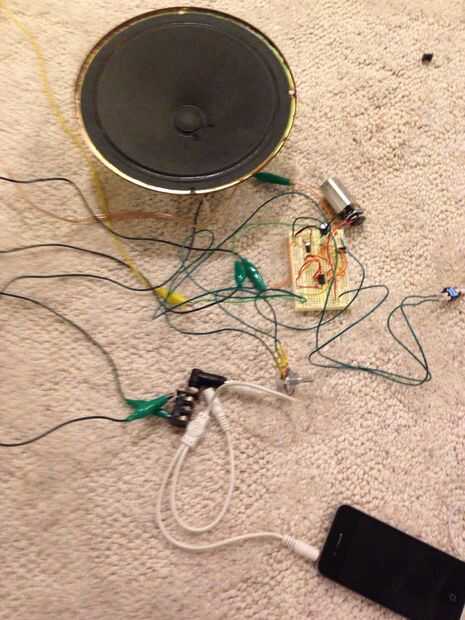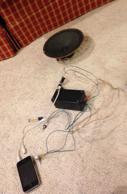 Ahora que has construido tu circuito de su tiempo para probarlo. Conectar la batería de nueve voltios, conecte su fuente audio de elección y prueba de distancia. La mejor parte de esta fase es que se puede experimentar con diferentes valores de condensadores de diferente sonido. También puede experimentar con distintos oradores. Te recomiendo altavoces de 8 ohmios, ya que tienden a sonar más agradable. Una vez que ha decidido en tu circuito final puesto en una caja. Utilicé una caja de proyecto de Radioshack y taladré un agujero grande en el lado de la misma para ejecutar mi altavoz, potenciómetro, interruptor, y audio jack conduce hacia fuera de.