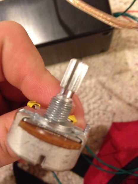 Tip: mi potenciómetro tenía un pedazo pequeño en lo que se impide conectar a la placa de montaje de metal, tan sólo doblar la pestaña de con unos alicates