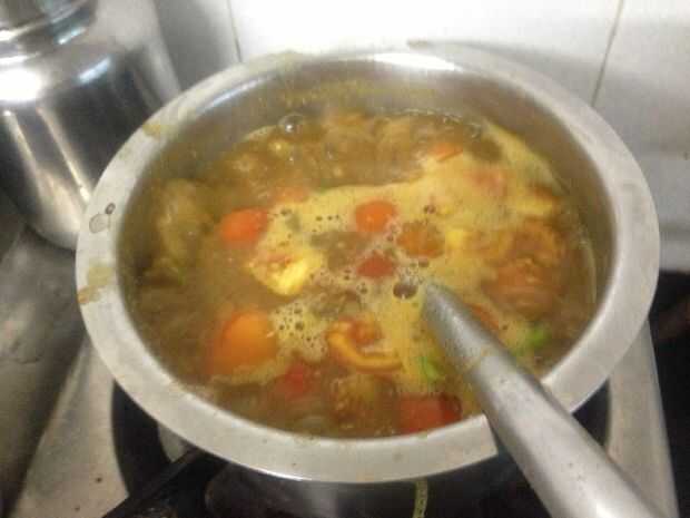 Que mostaza pop y luego añadir a sambar y mezclar con una cuchara de servir