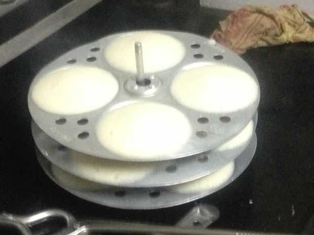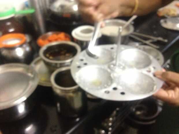 3 idlis en un patrón triangular y servir una cantidad generosa de sambar