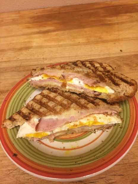 Una tarde, después de llegar a casa de un largo día de escuela, podrido mi refrigerador algo llenar mi estómago. Perder la esperanza de encontrar algo para satisfacer mi estómago gruñe, vuelta a la gaveta de carne y queso (en la nevera). Allí, encontré algunos deli jamón y queso suizo, pero eso no fue suficiente para mi vientre; con sus gruñidos, me condujo a la caja de cartón de huevo, la jarra de mayonesa y una hogaza de pan. Con estos ingredientes me y mi fiel compañero (mi estómago) creó un sándwich del cielo.