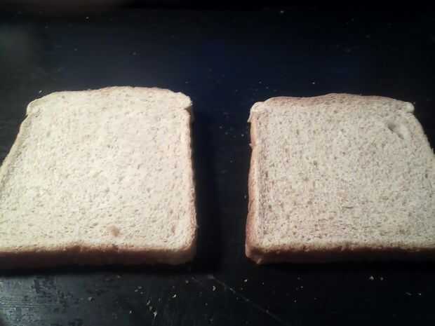 Coloque rebanadas de pan de tamaño aparentemente congruente.