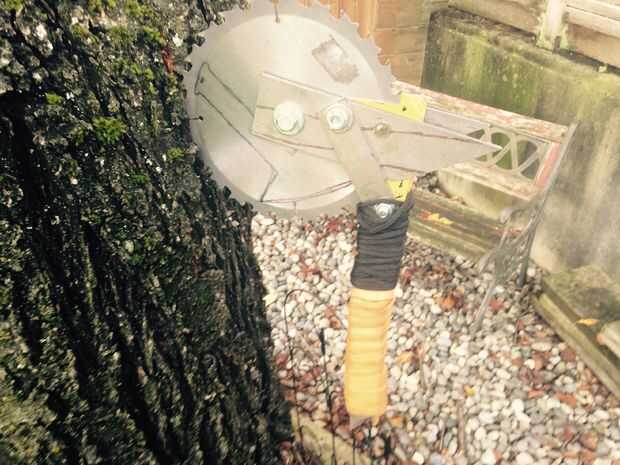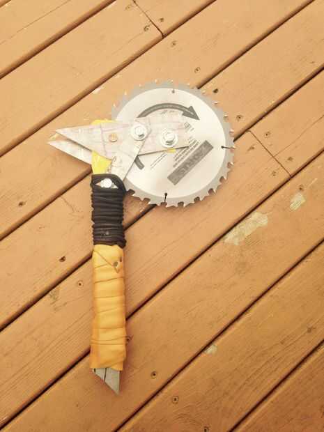 un día lo vi este disco viejo en mi garaje y pensé, "hey vamos a militarizar algo hoy". Este artículo está pensado como un tomahawk. Así funciona outstandingly bien. Como la mano de la gente le estoy shure no es difícil romper este proyecto realizado por ti mismo. ;)