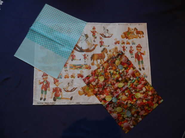 Una de las técnicas del scrapbooking es para cubrir los objetos por medio de papeles especiales, Estados Unidos o con motivos a color. Para esta foto, elegí papeles con como motivos de rayas, plantas, guisantes, caramelos o juguetes de madera. También elegí los otros materiales que pueden cubrir objetos como papel crep o fieltro ligero. Para jugar con los materiales, las texturas volver el scrapbooking juguetón. Obviamente es importante que los colores de sus varios materiales casarse bien para que el resultado es homogéneo, estética. En esta imagen elegí como el color: el azul, el verde y el naranja.