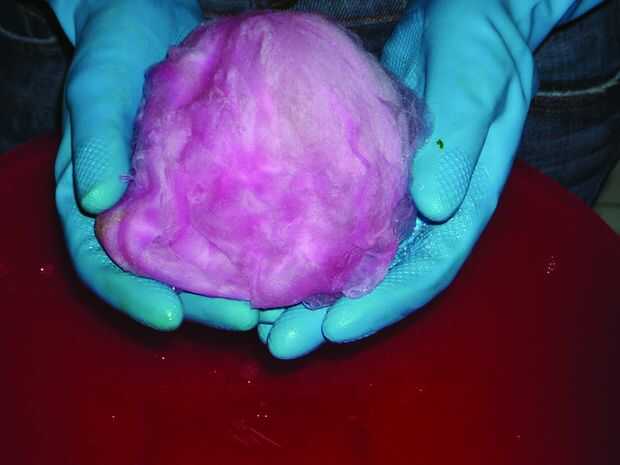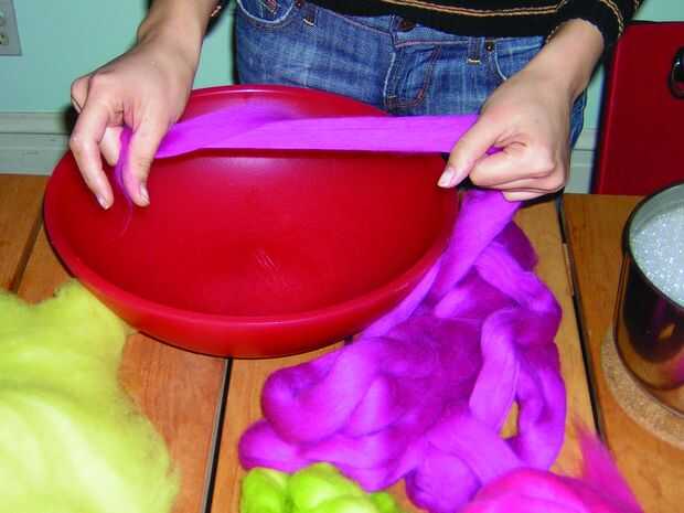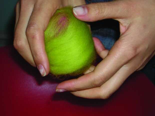 Paño grueso y suave de lana viene en forma en una cuerda esponjosa. Jale suavemente el extremo de la cuerda para sacar hebras de lana. Scrunch encima de un paño grueso y suave en color A una bola de 2 pulgadas. Luego, tire pedazos de lana en color B y empezar a envolver sobre la bola de lana. Colocar cada capa en una dirección diferente para que el paño grueso y suave de color B cubre totalmente el lana color A. Mantenga envolviendo la lana hasta tres veces el tamaño que desee su bola de fieltro que. La esfera será ligero y transparente como el algodón de azúcar.