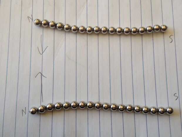 Paso 6: Repita los pasos 2-5. Como su imán es mayor, deberás empujar la línea entera hacia el imán.
