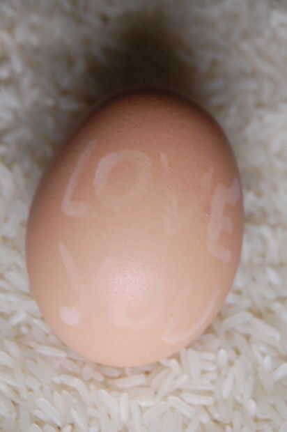 Según la fuente, hay variaciones: algunos dicen que hervir el huevo antes de la escritura con alumbre y vinagre, otros decir escribir, y luego hervir.