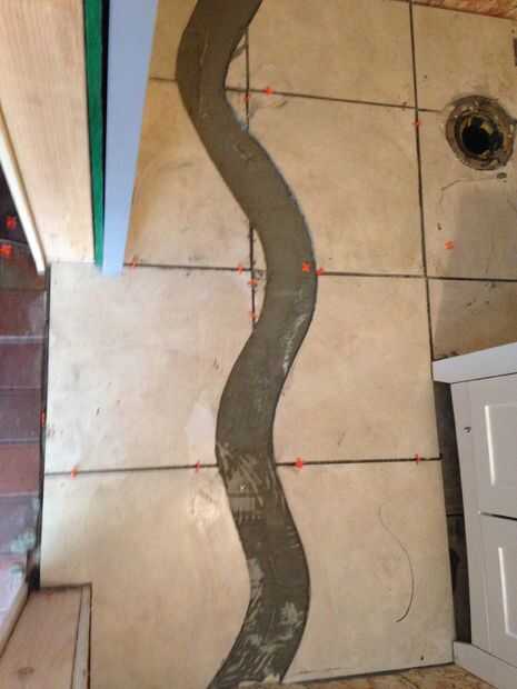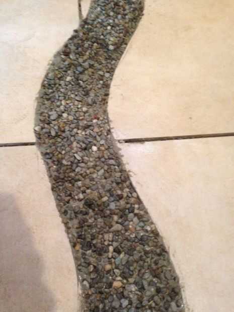 Después de terminar el azulejo que se establecen, llenar el espacio del centro de la mitad con barro. Usé pee grava de mi entrada para el río. Puede utilizar cualquier cosa sólo asegúrese de que es suave y no levantó a alta. Piense en lo que se sentiría como cuando tienes los pies descalzos.