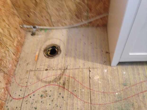 Se deben eliminar el gabinete y todo lo demás en el cuarto de baño. Mina fue pegado a la pared así que corte el frente piernas aproximadamente 3/8 por encima del piso con una herramienta multiusos. Uno de los vibrantes sierras y deslice mi azulejo debajo de él.