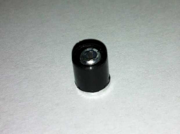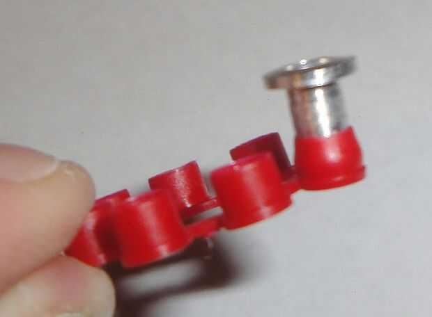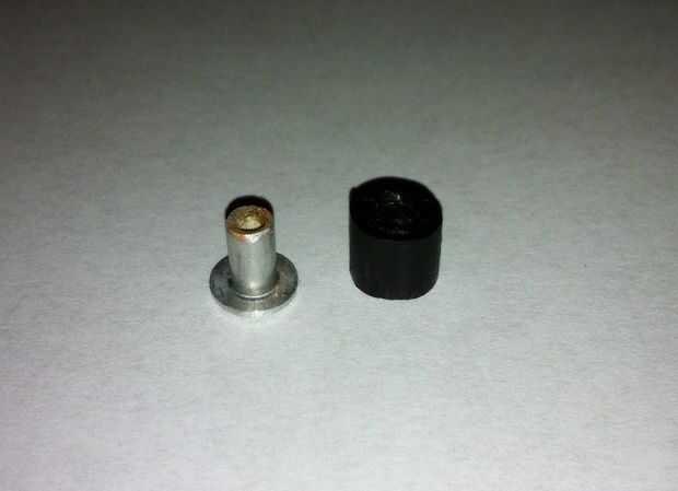 A continuación, corte un segmento corto de tubería de riego por goteo a la misma altura que el cilindro interior del remache collar. Parcialmente perfore el diámetro interior del riego por goteo con la 13/64" bits (al menos una profundidad de 3/16") de la tubería. La porción unenlarged de goteo tubería interior debe fricción ajuste alrededor de la parte inferior del cilindro interior del remache del collar y la porción ampliada se enfrenta a la parte superior para aceptar un tope.