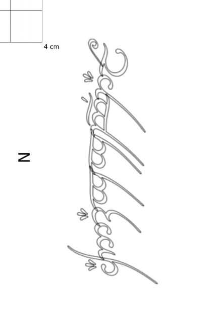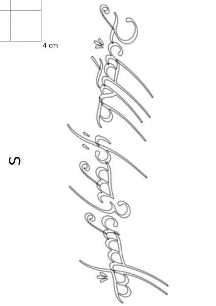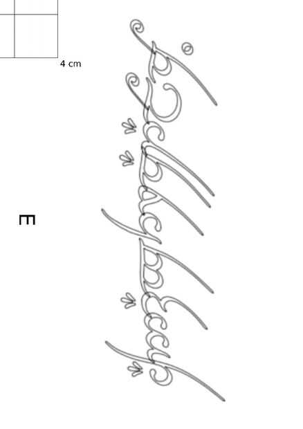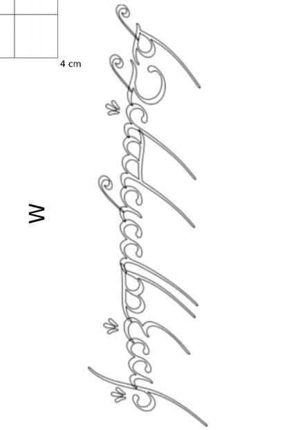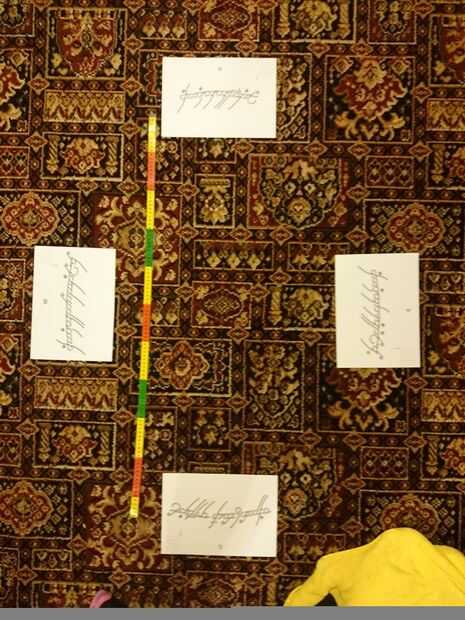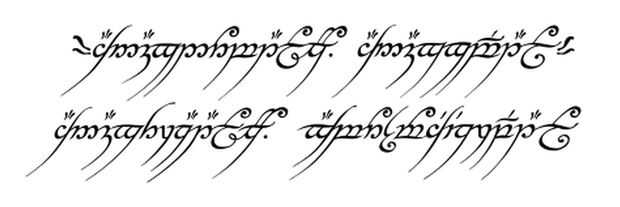 Encontré el texto que quería utilizar en línea. La inscripción del 4 versículo del anillo. La calidad no era brillante, así que utilicé la siguiente fuente que he descargado gratis desde aquí http://www.dafont.com/tengwar-annatar.font a escribir la fuente otra vez, entonces podría crear una versión de calidad superior del texto! Usé el editor gratuito de imágenes GIMP http://www.gimp.org/downloads/ para dar al texto una curva leve así que parecía era más redondeado como un anillo. Cada uno de los 4 versos imprimí en papel A4.