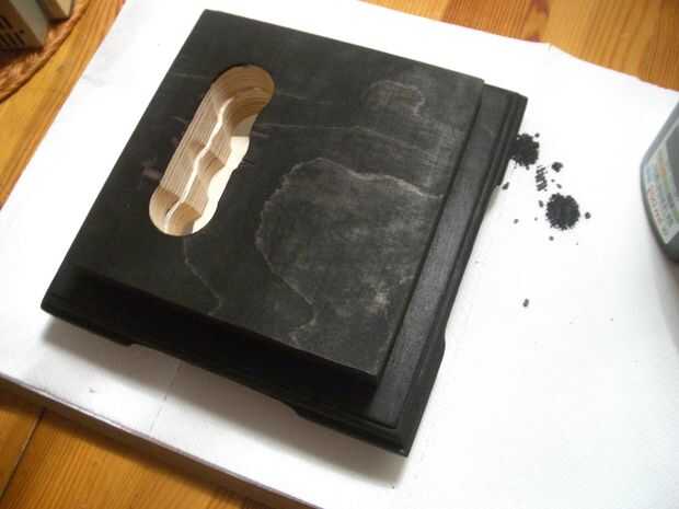Después probé la posición correcta para el marco teñido y había pintado el soporte y el montaje final.