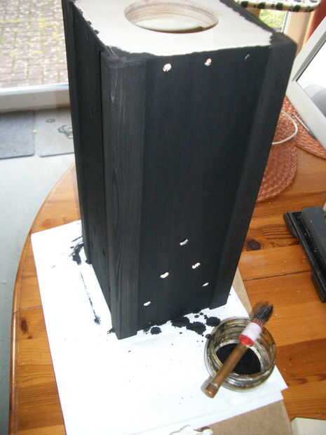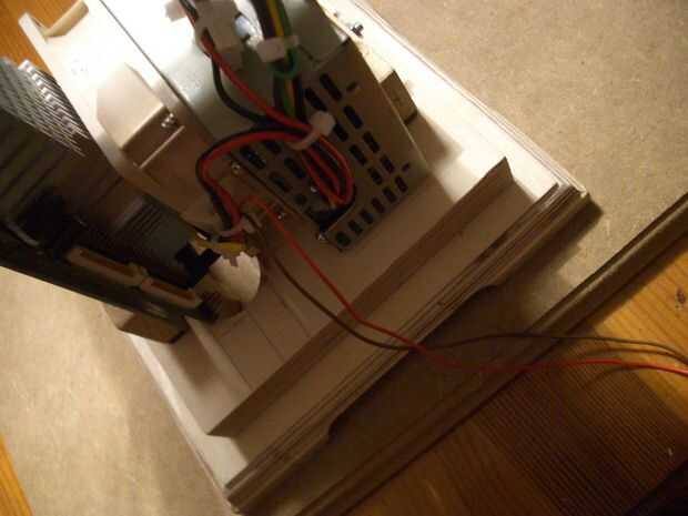 El caso fue de multiplex fino y teñido y pintado así. En la parte superior es una amplia abertura para el flujo de aire. Más adelante cubierto por otro pedazo de teñido y pintado multiplex.