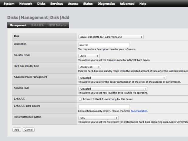 Asegúrese de, que elegir UFS como el sistema de archivo de pre formateado.