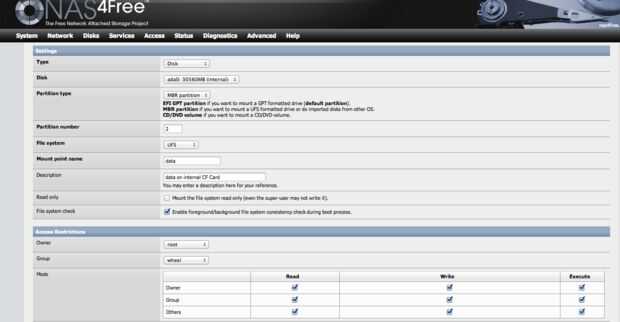 Elegir el montaje desde el menú disco y definir un punto de montaje. Aquí he elegido "datos" como el punto de montaje.