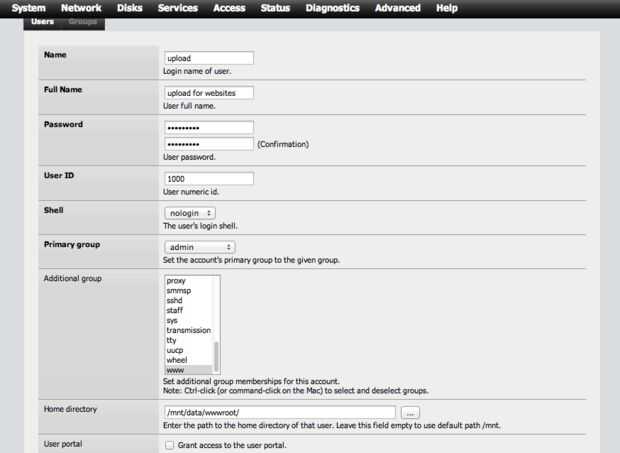Asignar grupos admin, ftp, www