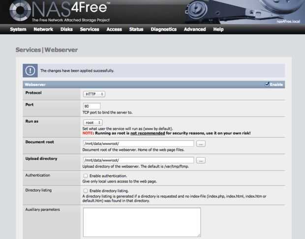 Ahora activar y configurar el servidor web como la imagen de abajo.