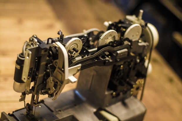 El mecanismo de la aguja permanecerá, así como el eje y el motor. El pie prensatela y su mecanismo de elevación se utilizará más adelante en el otro extremo de la cuchilla de corte.