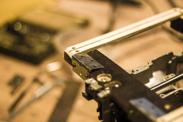 A continuación, añade dos bisagras al marco. Estas dos piezas son las únicas partes que tuve que comprar. 50c/pieza en un almacén local del hardware. Sirven para el mecanismo de inclinación. Es importante montar tanto como sea posible en una línea con el montaje de la hoja.
