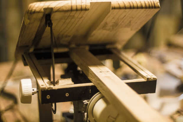 Para montar un brazo, tuve que cortar una ranura en la tabla por lo que podría caber por debajo de ella. Si hubiera sabido esto antes, habría dejado más espacio en el bastidor por debajo de la mesa, así que el brazo podría caber sin tener que salir del router. Es importante que el brazo esté estable y montado también en el resto. Utilice dos tornillos y pegamento aquí!