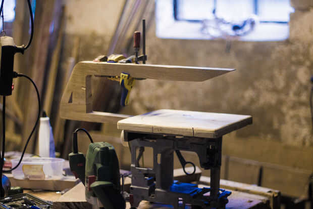 Después de cortar el resto del brazo de una pieza de 40mm de roble. Lo hice, sin embargo darse cuenta de que había una grieta natural en él. He rellenado con pegamento y añade tornillos para sostener el material aquí.
