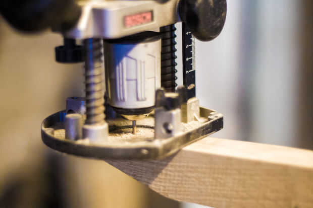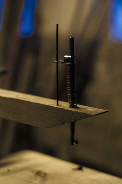 Una varilla de 3mm, así como de la máquina de coser, sirve como guía. Para hacer bien al brazo de montaje, la barra sí mismo sirve como un taladro para el taladro. Sólo raspe un extremo del mismo y montarlo en su taladro. Ahora 'taladro' en la madera y desmontar en cuanto es lo suficientemente profundo. Sólida como una roca!