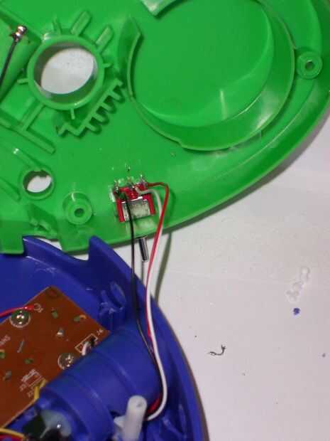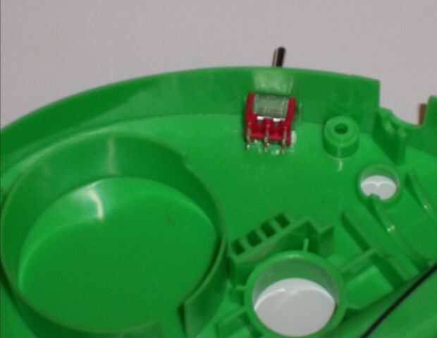 El blanco para el contacto del centro de la soldadura. Suelde el cable rojo (alto volumen) al derecho "contacto. Esto corresponde a mover el interruptor a la izquierda, que el icono de imprimir en el caso. Suelde el cable negro (bajo volumen) para el contacto izquierdo, correspondiente a mover el interruptor a la derecha.
